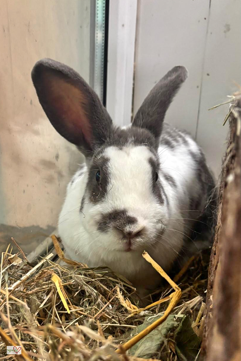 Kaninchenböckchen Michel hat, wie sein Leidensgenosse Lui, die letzten sechs Jahre in einem kleinen Kaninchenkäfig verbracht. Er ist etwas ängstlicher und schüchterner als Lui. Michel wurde bei uns kastriert und muss daher noch ein paar Wochen bis zur Vergesellschaftung warten. Danach sucht auch er eine nette Partnerin gleichen Alters inklusive großem artgerechtem Kaninchengehege mit vielen Rückzugsmöglichkeiten.